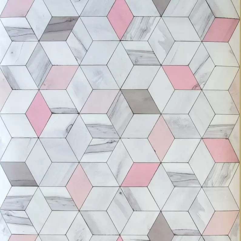Tapet cu efect 3D, model geometric, gri, alb, roz, vinil compact, extralavabil, pe suport de bumbac netesut (vlies). Dimensiune rola: 53cm x 10m. La acest model de tapet este nevoie de un adeziv vlies (pentru suport de bumbac) care se va aplica doar pe perete. Pentru pregatirea suprafetei este necesara amorsarea peretilor cu amorsa acrilica pentru o lipire uniforma si de lunga durata.