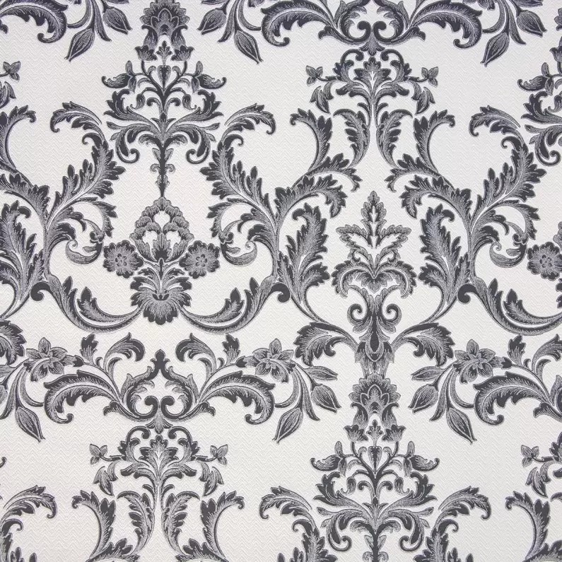 Tapet clasic, fond alb, model baroc negru, spuma vinilica, texturat, lavabil, pe suport de bumbac netesut (vlies). Dimensiune rola: 53cm x 10m. La acest model de tapet este nevoie de un adeziv vlies (pentru suport de bumbac) care se va aplica doar pe perete. Pentru pregatirea suprafetei este necesara amorsarea peretilor cu amorsa acrilica pentru o lipire uniforma si de lunga durata.