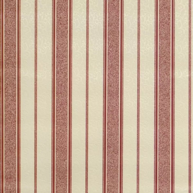 Tapet clasic, model in dungi, bordo, crem, cu sclipici argintiu foarte fin, fond metalizat, textura iesita in relief, spuma vinilica, lavabil, pe suport de hartie. Dimensiune rola: 53cm x 10m. La acest model de tapet este nevoie de un adeziv special (pentru suport de hartie) care se va aplica si pe perete si pe tapet. Pentru pregatirea suprafetei este necesara amorsarea peretilor cu amorsa acrilica pentru o lipire uniforma si de lunga durata.