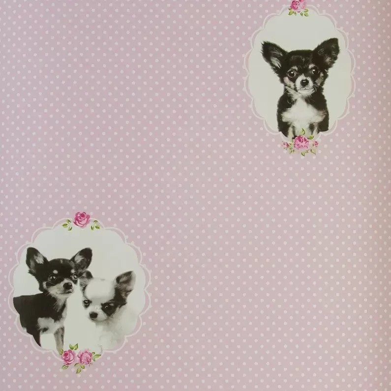 Tapet copii cu catelusi si bulinute albe be fond mov, hartie, semilavabil, pe suport de bumbac netesut (vlies). Dimensiune rola; 53cm x 10m. La acest model de tapet este nevoie de un adeziv vlies (pentru suport de bumbac) care se va aplica doar pe perete. Pentru pregatirea suprafetei este necesara amorsarea peretilor cu amorsa acrilica pentru o lipire uniforma si de lunga durata.