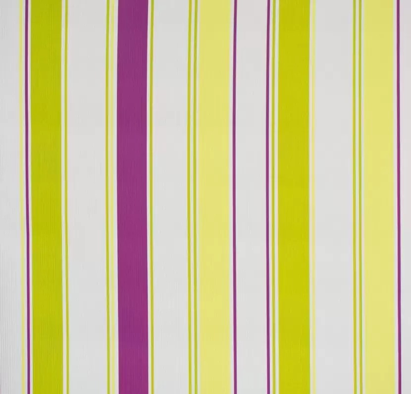 Tapet modern, model in dungi, alb, verde, mov, hartie, semilavabil, pe suport de bumbac netesut (vlies). Dimensiune rola: 53cm x 10m La acest model de tapet este nevoie de un adeziv vlies (pentru suport de bumbac) care se va aplica doar pe perete. Pentru pregatirea suprafetei este necesara amorsarea peretilor cu amorsa acrilica pentru o lipire uniforma si de lunga durata.