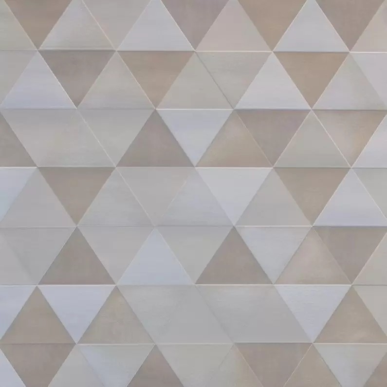 Tapet modern, model geometric cu triunghi, nuante bej, maro deschis, gri deschis, suprafata texturata, spuma vinilica, lavabil, pe suport de bumbac netesut, dimensiune rola: 53cm x 10m La acest model de tapet este nevoie de un adeziv vlies (pentru suport de bumbac) care se va aplica doar pe perete. Pentru pregatirea suprafetei este necesara amorsarea peretilor cu amorsa acrilica pentru o lipire uniforma si de lunga durata.