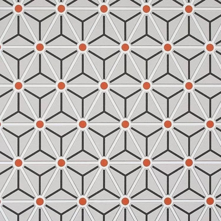 Tapet modern, efect 3d, gri, alb, negru, cu buline pe portocaliu, spuma vinilica, lavabil, pe suport de bumbac netesut (vlies). Dimensiune rola; 53cm x 10m. La acest model de tapet este nevoie de un adeziv vlies (pentru suport de bumbac) care se va aplica doar pe perete. Pentru pregatirea suprafetei este necesara amorsarea peretilor cu amorsa acrilica pentru o lipire uniforma si de lunga durata.