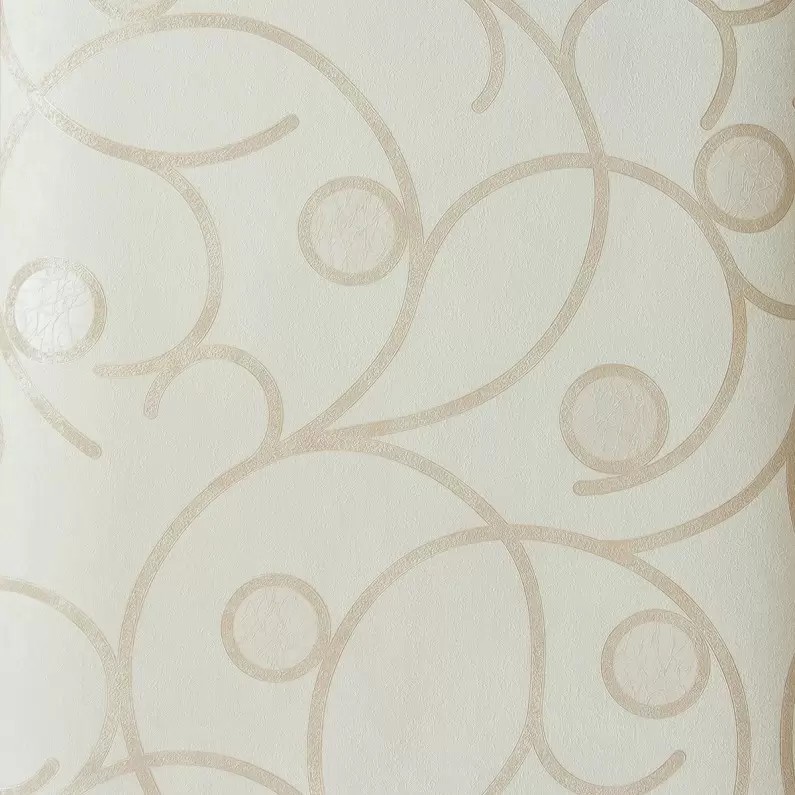 Tapet modern pe fond crem deschis cu cercuri crem si linii curbate crem , vinil compact, extralavabil, pe suport de bumbac netesut, dimensiune rola: 53cm x10m La acest model de tapet este nevoie de un adeziv vlies (pentru suport de bumbac) cu care se va da doar pe perete la montaj.Inaintea montajului indicam amorsarea peretilor cu amorsa acrilica pentru o lipire uniforma si de lunga durata.