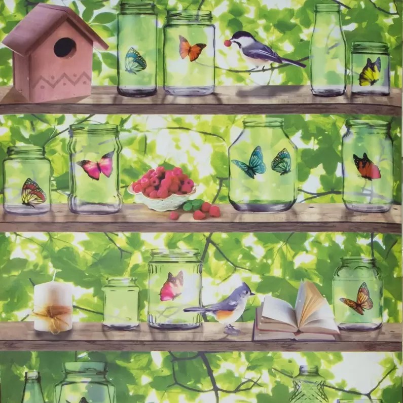 Tapet tematic, cu rafturi si frunze, verde, hartie, semilavabil, pe suport de bumbac netesut (vlies). Dimensiune rola: 53cm x 10m La acest model de tapet este nevoie de un adeziv vlies (pentru suport de bumbac) care se va aplica doar pe perete. Pentru pregatirea suprafetei este necesara amorsarea peretilor cu amorsa acrilica pentru o lipire uniforma si de lunga durata.