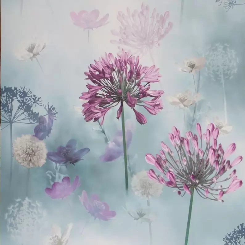 Tapet tematic, model floral, albastru, mov, gri, hartie, suprafata neteda, semilavabil, pe suport de hartie. Dimenisune rola: 53cm x 10m. La acest model de tapet este nevoie de un adeziv special (pentru suport de hartie) care se va aplica si pe perete si pe tapet. Pentru pregatirea suprafetei este necesara amorsarea peretilor cu amorsa acrilica pentru o lipire uniforma si de lunga durata.