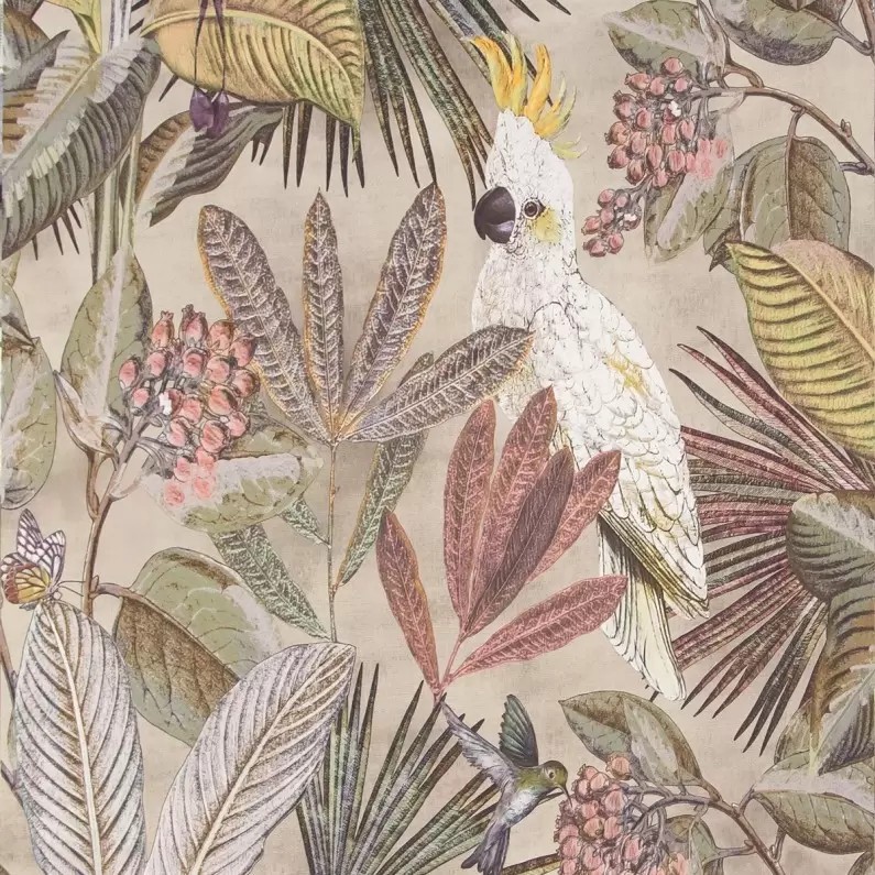 Tapet tematic, cu papagal, frunze, multicolor,fond gri, vinil compact, extralavabil, pe suport de bumbac netesut (vlies). Dimensiune rola: 53cm x 10m. La acest model de tapet este nevoie de un adeziv vlies (pentru suport de bumbac) care se va aplica doar pe perete. Pentru pregatirea suprafetei este necesara amorsarea peretilor cu amorsa acrilica pentru o lipire uniforma si de lunga durata.