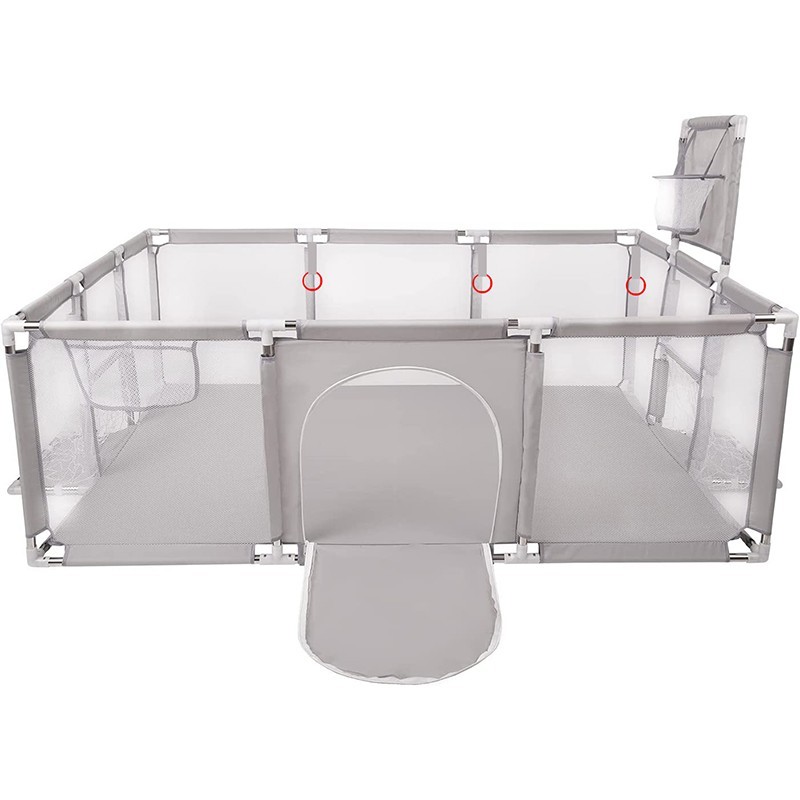 Specificatii tehnice: Culoare: gri Dimensiuni totale: 230x122x62cm (lungimea de 230cm este masurata cu tot cu portile de fotbal nedetasabile, fara porti 180cm ) Cos de baschet detasabil, cu inaltime de 100cm (62cm inaltimea tarcului +38cm cosul) 2x pereti cu porti pentru mingi si plasa Diametrul jantei cosului: 18cm Material: tesatura oxford 150D Cadru metalic robust cu accesorii din plastic Intrare cu fermoar Dimensiuni intrare: aprox. 42x45cm Atentie , bilele din plastic nu sunt incluse in pachet ! Tarcul pliabil, asigura ore de distractie fara sfarsit pentru unul sau mai multi copii. Cu parcul nostru, puteti crea un mediu de joaca sigur pentru copilul dumneavoastra. Vine cu pereti din plasa de ventilatie pentru o vizibilitate usoara si o usa cu fermoar pentru acces usor.Usor de asamblat si pus deoparte sau chiar de luat pentru vacante sau petreceri. In acest fel, veti avea intotdeauna o zona de joaca sigura. Copilul dvs. mic poate exersa statul in picioare si tararea in parc. El/ea poate sa se traga singur(a) si sa exerseze pasii in timp ce se joaca cu marginile din jur, cosul de baschet ofera un puls de distracte.