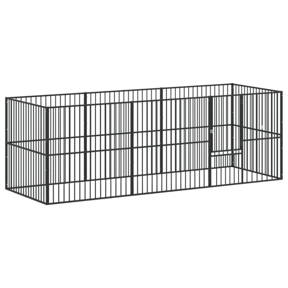 Tarc pentru caini cu 8 panouri, negru, otel galvanizat