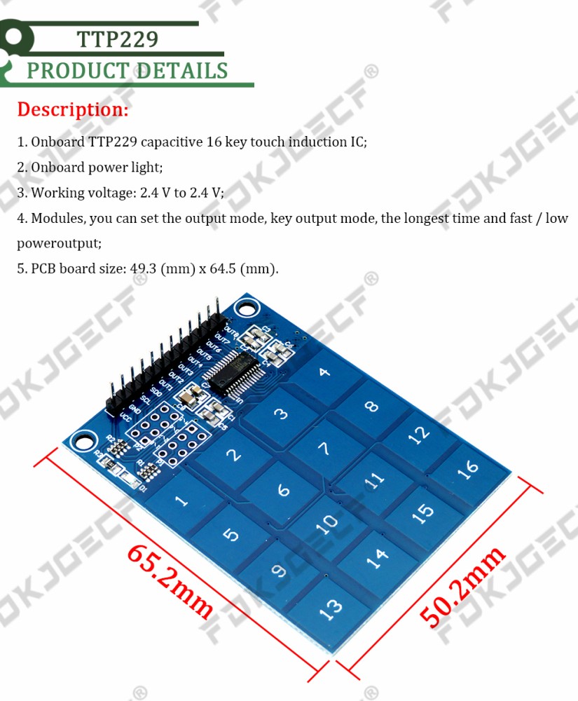 Tastatura digitala cu 16 butoane capacitiva TTP229