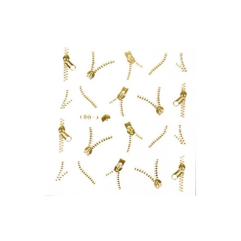 Folie cu 20 tatuaje cu fermoar auriu. Transferul se realizeaza cu ajutorul apei. Tot ce trebuie sa faci este sa indepartezi folia transparenta, sa decupezi tatuajul dorit pe care apoi il pui intr-un pahar cu apa calduta aproximativ 10 secunde. Dezlipeste cu grija tatuajul de pe hartie si aplica-l pe unghie. Asteapta sa se usuce complet si aplica un strat de finish (top coat sau lac de unghii).