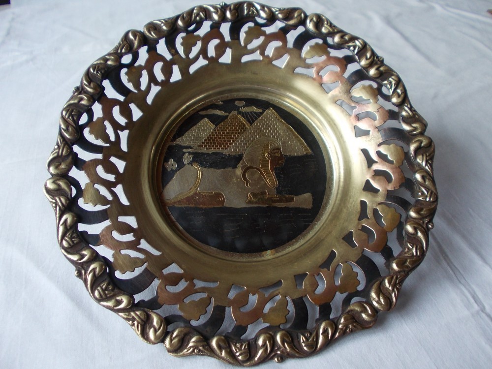 Tava aplica din alama si bronz-EGYPT,H=3cm,D=23cm.