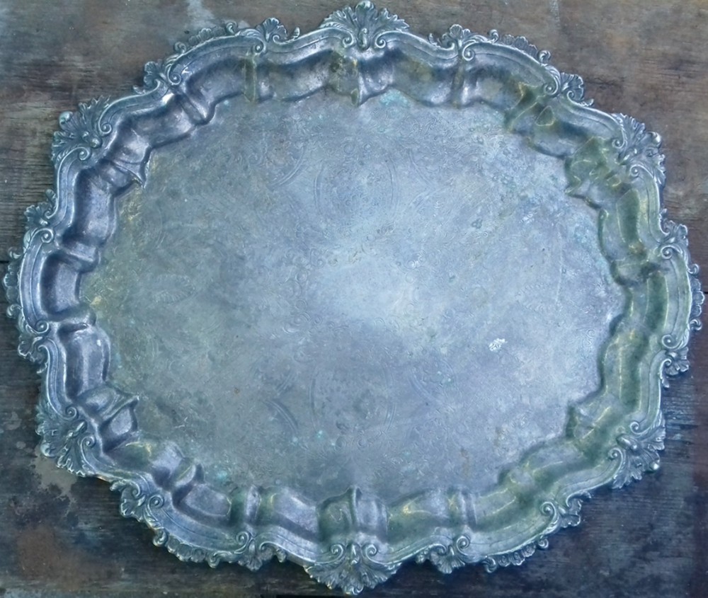 Tava veche , decorativa din metal argintat Prezinta marcaj pe spate