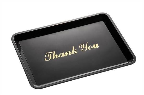 Tavita pentru prezentare nota de plata cu inscriptionare "Thank You" cu auriu, din ABS; dimensiuni 16.5x11.5xH0.5 cm; culoare neagra