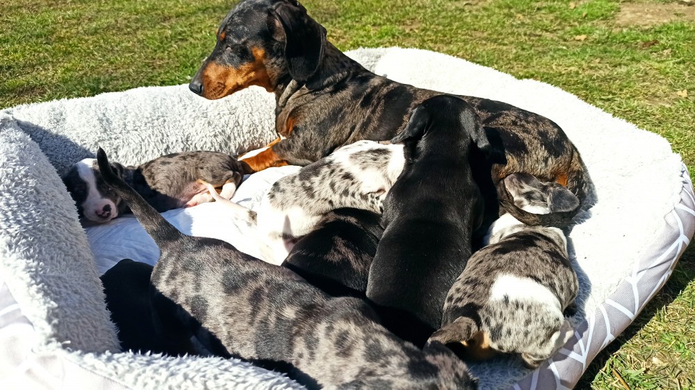 Teckel Arlequin/ Arlechin. Câinii au 3 saptamâni, ii voi da atunci când termin toate vaccinurile.Cateii de?in carnet de sanatate,daca dori?i ii pot cipa. De?in parin?ii, ambii sunt Arlequin. Pre?ul este u?or negociabil. Pentru mai multe detalii/poze ma pute?i contacta pe WhatsApp