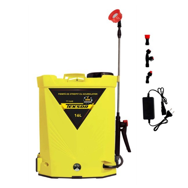 TT-16AB TEKSOR Pompa de stropit cu acumulator 12 V, 8 Ah, capacitate 16 L.