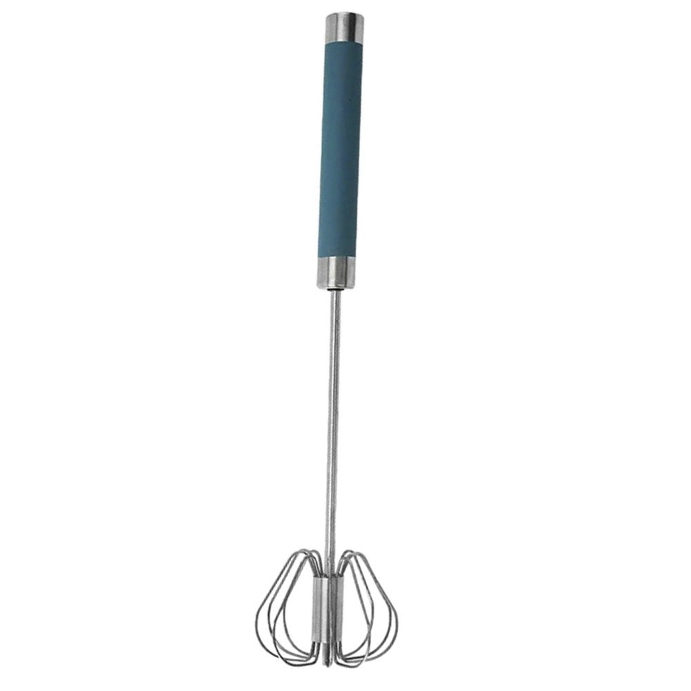 Tel practic semi automat Pufo din otel, tip mixer cu actionare manuala, pentru spumare si amestecare, 31 cm, albastru