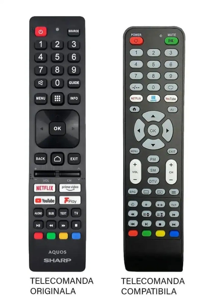 Telecomanda TV Sharp SHW/RMC/0137N compatibila cu originalul ER 9586 (586). Produsul disponibil spre vanzare este telecomanda inlocuitoare, cea din partea dreapta a imaginii. Telecomanda originala, afisata in stanga, este prezentata doar cu titlu de referinta, pentru a arata compatibilitatea. Modelul de telecomanda inlocuitoare functioneaza perfect si este compatibil cu varianta originala. Cod ER: 9586.