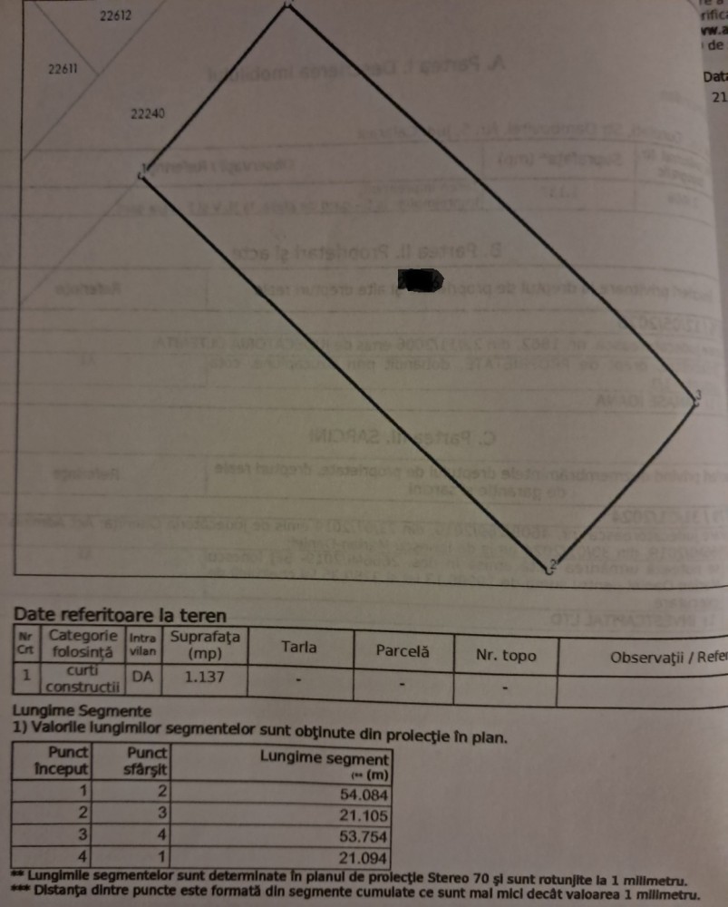 Vând teren intravilan, în suprafață de 1.137 mp (54m x 21m),