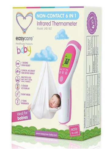 Termometru non contact multifunctional 6in1 EASYCARE Baby : un dispozitiv modern cu utilizare multipla, care utilizeaza un senzor de infrarosii pentru a masura rapid, in cca 1 secunda, temperatura corpului uman la persoanele de toate varstele cat si a obiectelor, lichidelor sau camerei. Acest termometru non contact multifunctional poate fi folosit foarte usor atat acasa cat si in mediu profesional de catre medici specialisti, drept instrument de referinta.