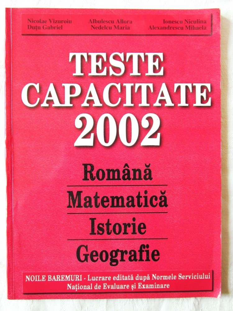 "TESTE CAPACITATE 2002 - Romana, Matematica, Istorie, Geografie", Col. aut, 2002