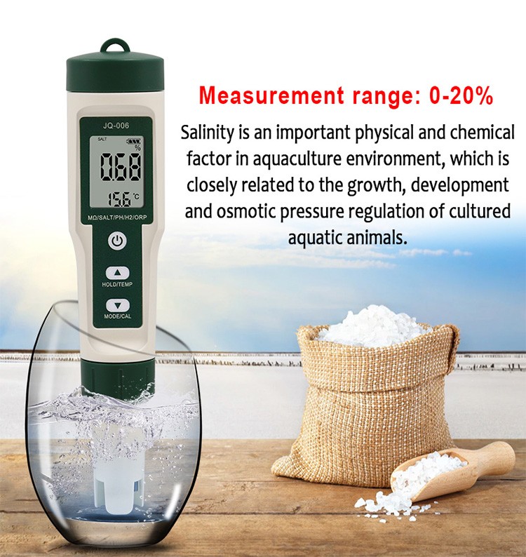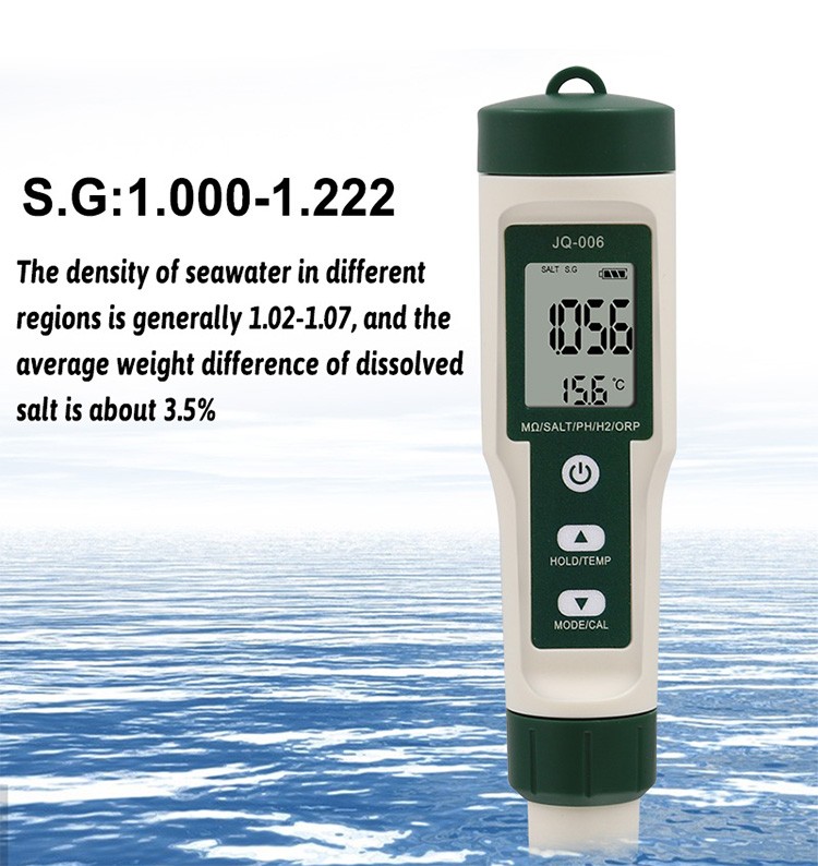*2. Functia 10-in-1: Tester digital de apa pentru masurarea pH-ului, TDS, sare, SG, ORP, CE, hidrogen, rezistivitate, temperatura si nutrienti.