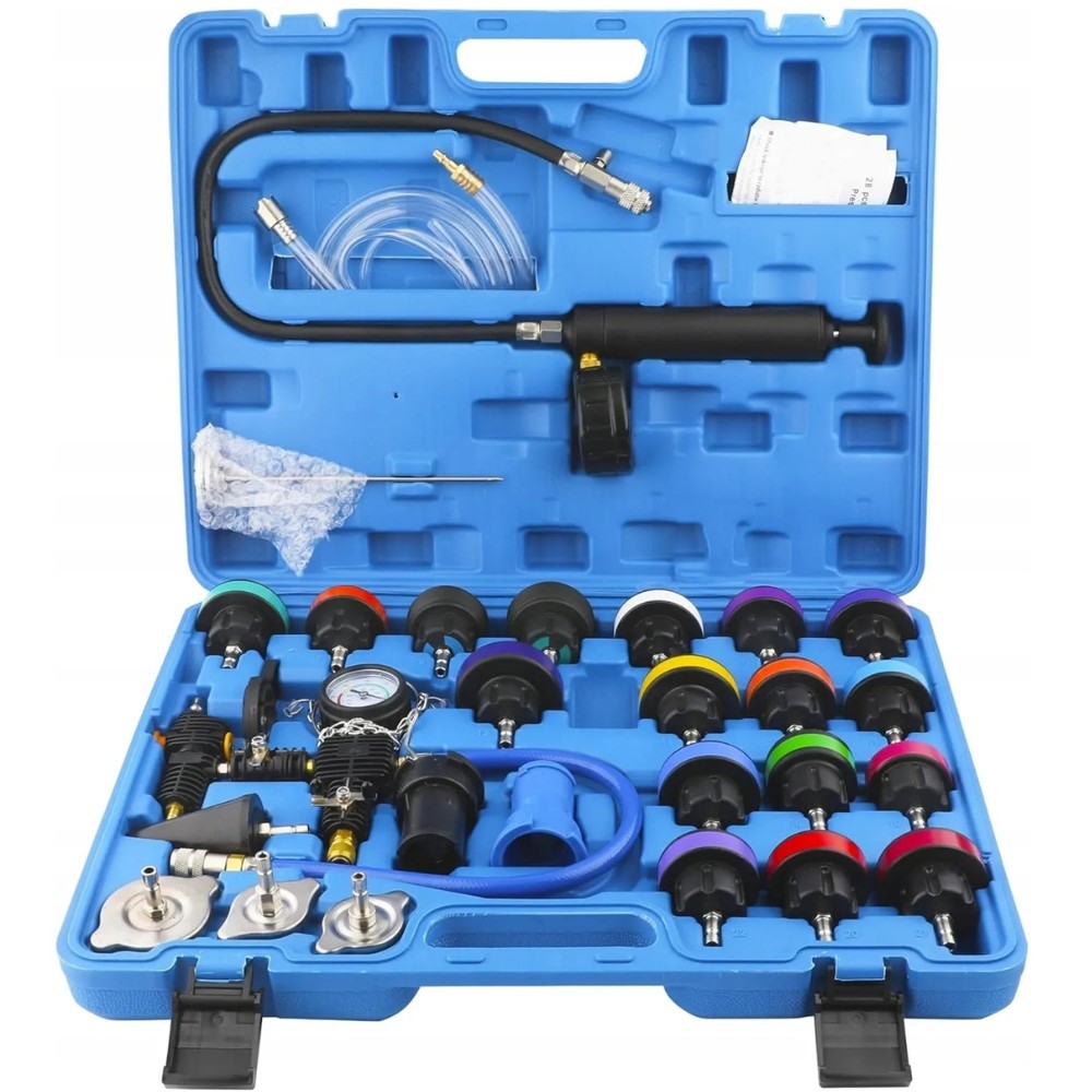 Permite verificarea etanșeității radiatorului, a capacului vasului de expansiune și a furtunurilor, precum și testarea capacului de presiune pentru a asigura funcționarea corectă a întregului sistem de răcire.