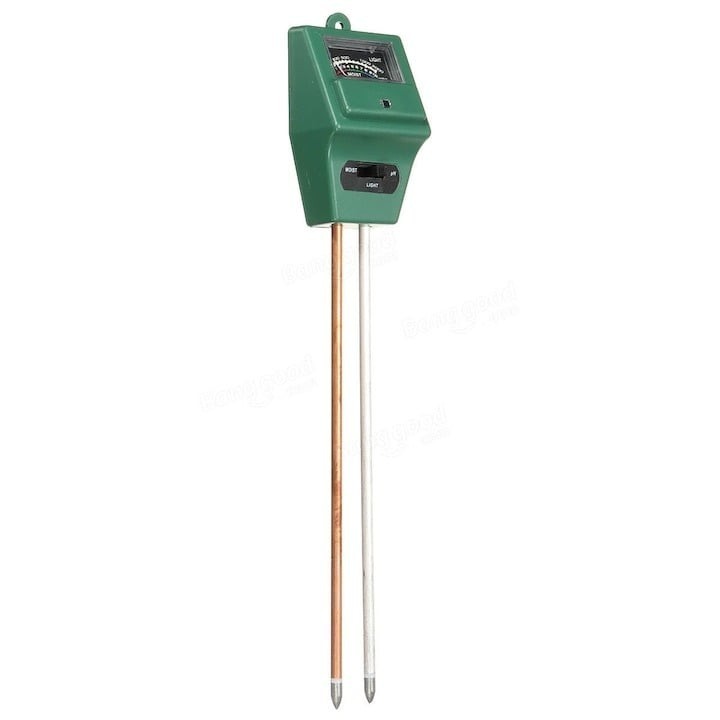 Acum puteti verifica cu exactitate starea solului iar in functie de rezultat sa planificati mentinerea conditiilor de sol propice pentru fiecare planta. Acest tester masoara atat umiditatea solului cat si pH-ul si lumina. Este prevazut cu 2 sonde si este foarte usor de utilizat. Poate fi utilizat atat pentru ghivece cat si pentru gradina sau gazon. Umiditatea solului este masurata in 3 nivele: uscat, neutru si umed. Testerul este prevazut cu comutator care va permite sa selectati ce anume doriti sa masurati. Rezultatul este foarte precis si usor de citit. Caracteristici: - tester pentru sol 3 in 1; - masoara umiditatea, lumina si pH-ul solului; - prevazut cu 2 sonde; - scala umiditate 1-10: 1-3 uscat, 4-7 neutru, 8-10 umed; - scala pH 3.5-8: 3.5-6 acid, 7 neutru, 7-8 baza; - scala 0-2000: 0-500 scazut, 1000-2000 inalt; - comutator pentru modul de functionare; - rezultatul este usor de citit; - puteti verifica starea solului; - foarte usor de utilizat; - prevazut cu agatatoare care faciliteaza suspendarea; - functioneaza fara baterii, gata de utilizat imediat; - poate fi curatat cu ajutorul unei carpe; - lungime sonda 20.5 cm; - inaltime totala 29.5 cm; - latime tester 5 cm; - realizat din ABS; - greutate 57 g; - culoare verde.