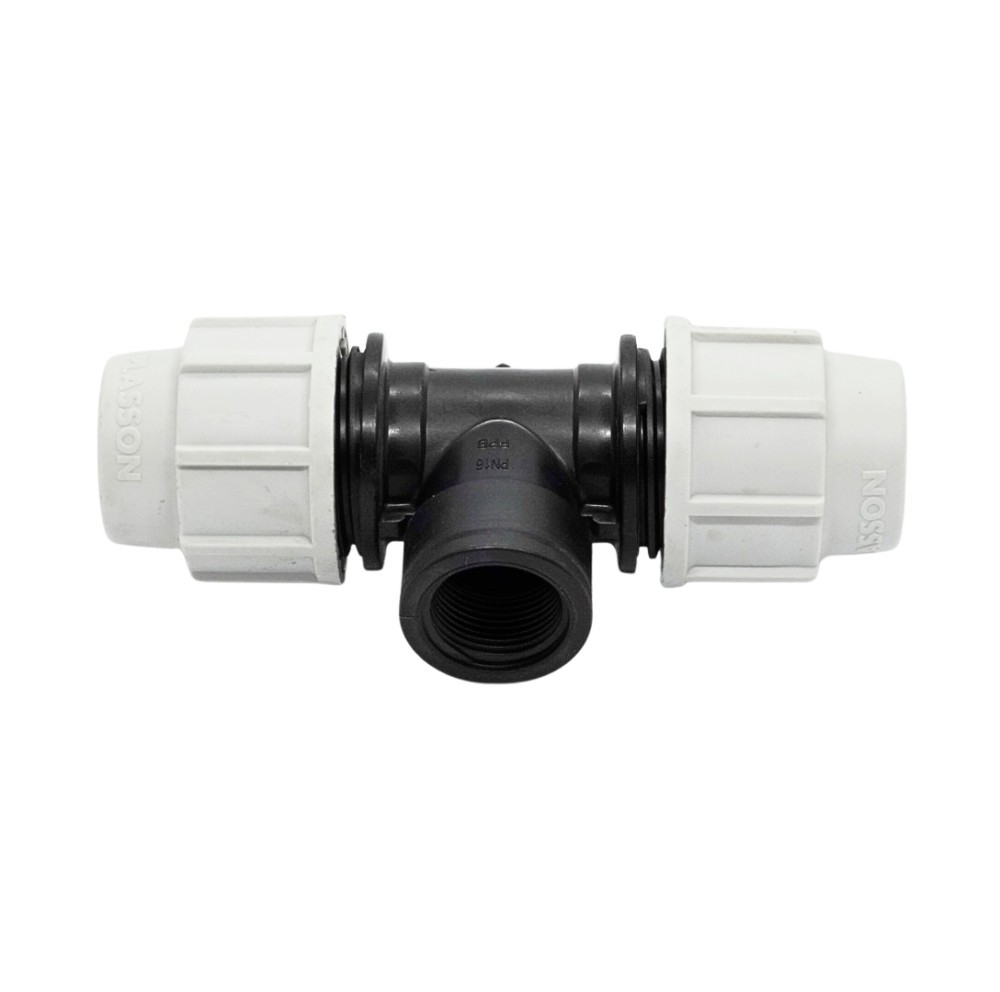 Teul compresiune cu filet interior (FI) este proiectat pentru a realiza o derivare laterală în instalațiile de apă, cu posibilitatea conectării la un robinet sau alt echipament filetat. Două dintre ramuri sunt pentru țeavă PE, iar cea de-a treia este prevăzută cu filet interior, compatibil cu fitinguri metalice sau plastice.