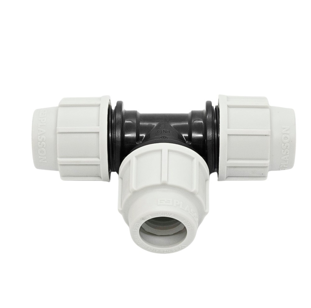 Teul egal compresiune este utilizat pentru a realiza o ramificație în T între trei țevi de polietilenă cu același diametru. Este soluția ideală în rețelele de apă potabilă, irigații sau instalații tehnice, atunci când ai nevoie de o derivare uniformă și sigură.