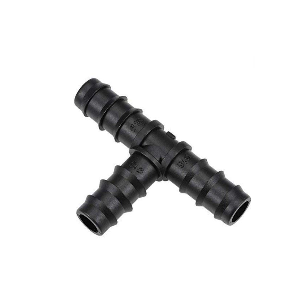 Teul pentru tub de picurare 16 mm x 16 mm x 16 mm este un conector insert esential in sistemele de irigatii, permitand ramificarea rapida si sigura a conductei in trei directii. Este ideal pentru tubul de picurare sau tubul orb de 16 mm, atat in instalatii rezidentiale, cat si in solarii sau culturi agricole. Conexiunea este de tip push-fit, cu striatii interioare care fixeaza ferm tubul si previn desprinderea accidentala, chiar si la presiuni ridicate. Nu necesita piulite, coliere sau unelte speciale, ceea ce il face usor de montat si de reutilizat in orice configuratie a retelei.