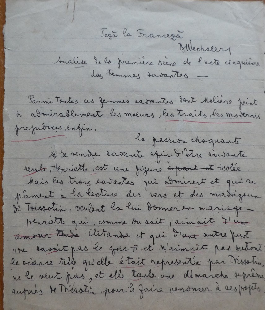 Teză la Franceză aparținând lui Beniamin Fundoianu ( Wechsler ), cca. 1915