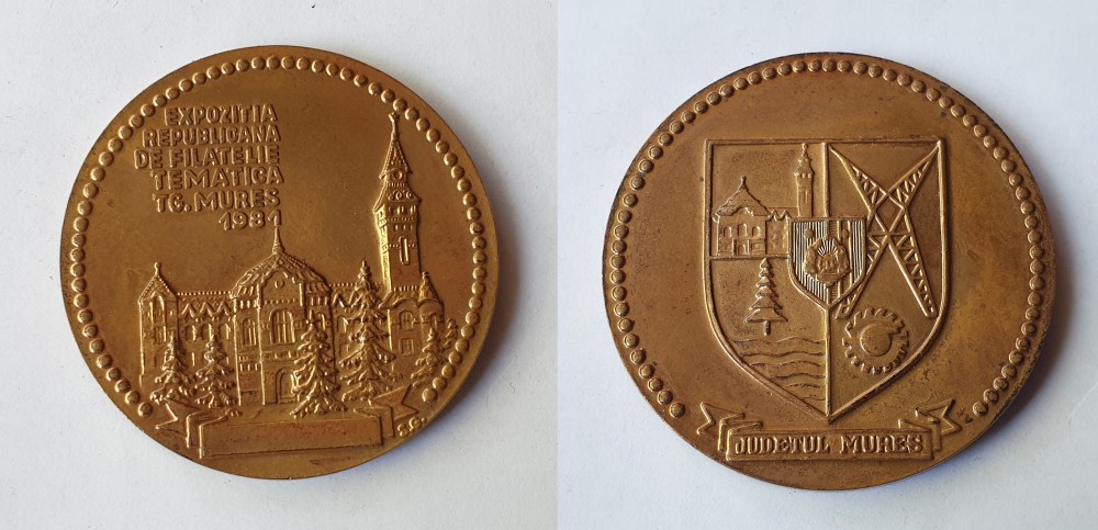 Tg.Mures - Judetul Mures EXPOZITIA FILATELICA - placheta RSR - Medalie anul 1981