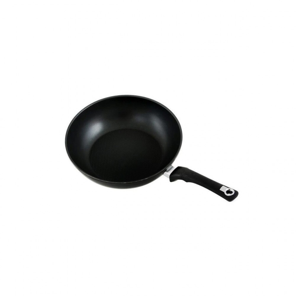Wok Impact Inductie cu diametru de 28 cm, din aliaj de aluminiu, compatibil cu orice sursa de caldura inclusiv inductie. Gatitul cu acest wok va fi o placere, este rezistet la zgarieturi iar mancarea gatita nu se va lipi. Cu ajutorul manerului din silicon cu insertie de aluminiu si rezistent la caldura vei putea manevra mai usor wok-ul. Poate fi folosit si la cuptor, la o temperatura de maxim 200 gr. Spalatul wokului nu va fi un lucru dificil, acesta se poate spala si in masina de spalat vase.
