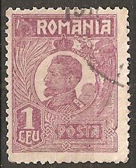 TIMBRE 104a5, ROMANIA, 1920, FERDINAND BUST MIC, 1 LEU, EROARE, PUNCT DE CULOARE PE LATURA DREAPTA