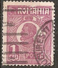 TIMBRE 104a9, ROMANIA, 1920, FERDINAND BUST MIC, 1 LEU, EROARE, INTRERUPERE URIASA A CADRULUI PE LATURA DE SUS, EROARE MAJORA, COLOSALA, RARITETE, ECV