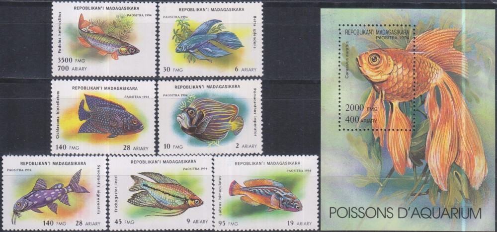 Madagaskar, anul 1994, alcătuită din 7 valori și o coliță.