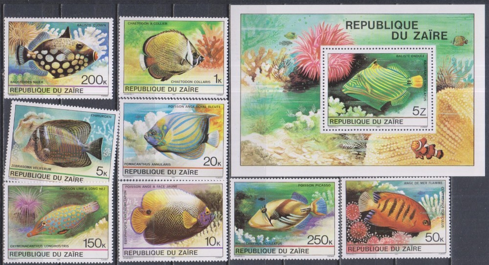 Zair, anul 1980, alcătuită din 8 valori și o coliță.