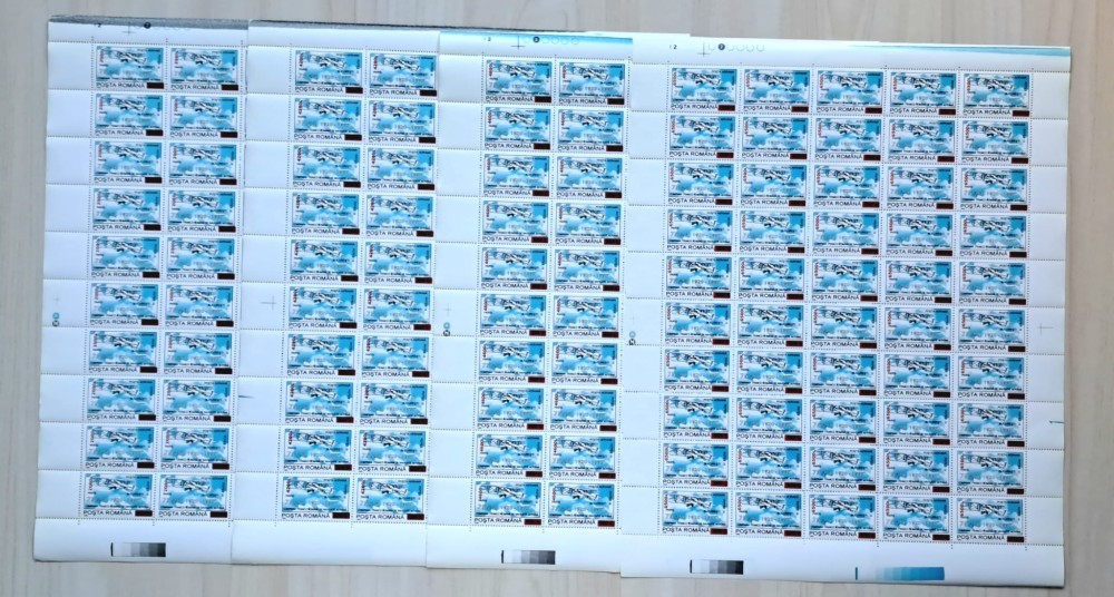 TIMBRE ROMÂNIA LP 1528/2000 75 ani de la înființarea C.F.R.N.A. (supratipar) -Set 4 coli a 50 timbre -MNH