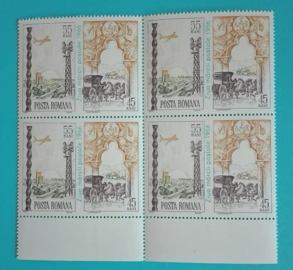 TIMBRE ROMANIA 1966 L.P.640 ZIUA MARCII POSTALE BLOC DE 4 VALORI MNH