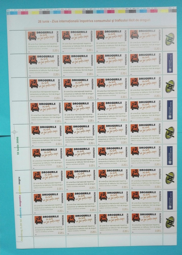 TIMBRE ROMANIA2006 LP1728 Ziua împotriva cons si trafic ilicit droguri coala MNH