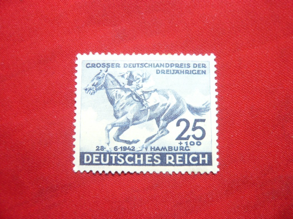Timbru 25 pf+100 albastru Calarie Germania 1942 cu sarniera