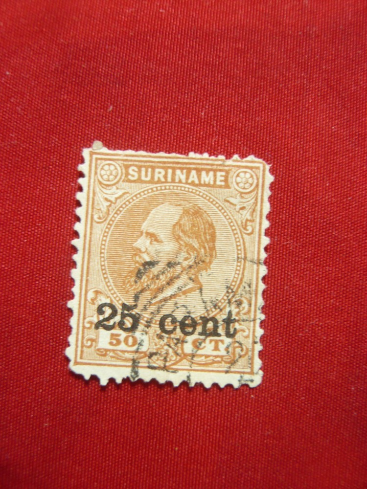 Timbru 25C supratipar pe 50C orange Suriname colonie olandeza 1900 stampilat