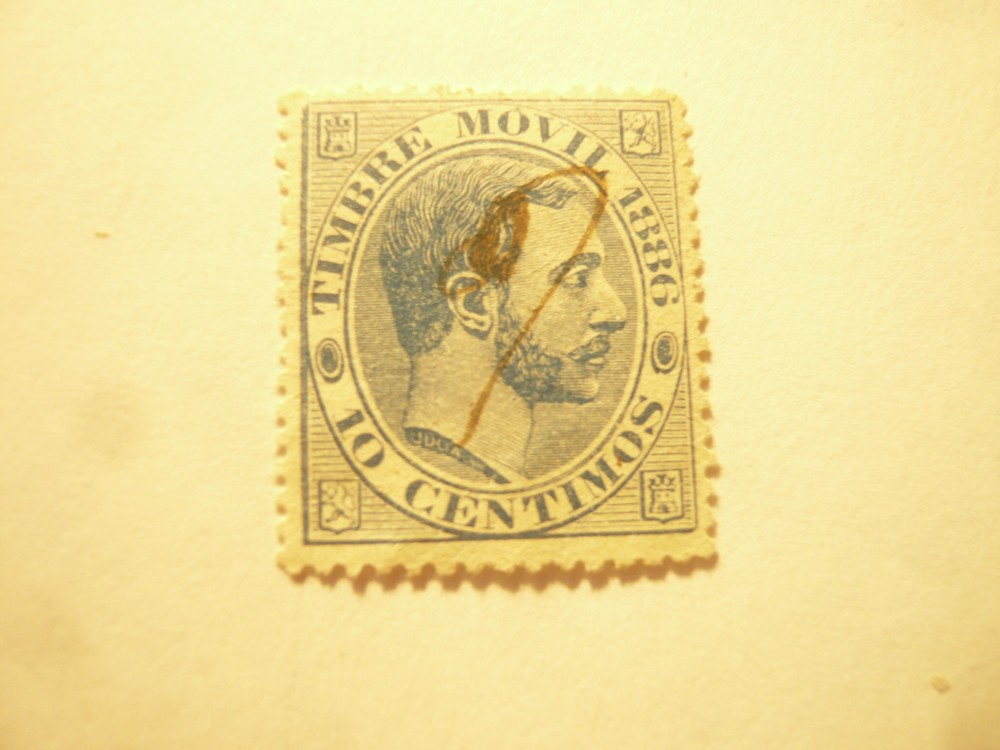 Timbru Fiscal Spania 1885 Alfons XIII , 10 centimos ,anulat