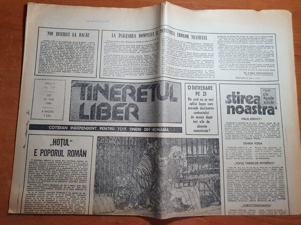 tineretul liber 24 mai 1990-art. hotul e poporul roman