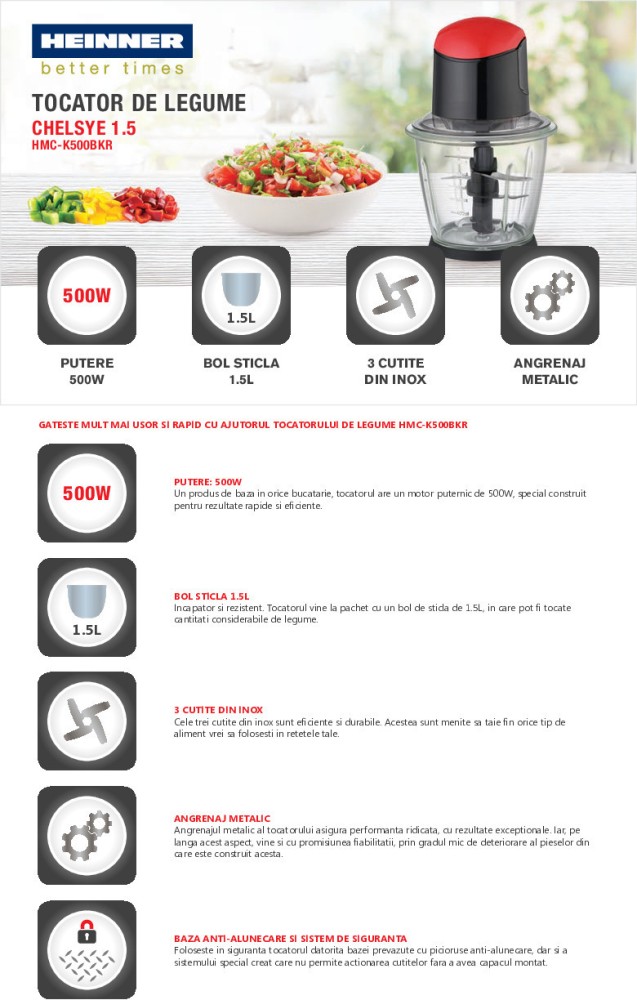 TOCATOR DE LEGUME HEINNER HMC-K500BKR