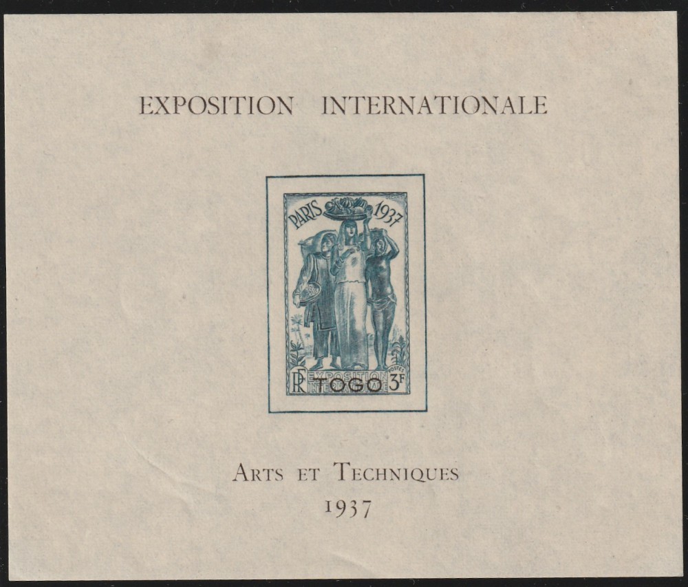 Togo Colonii franceze 1937 - Omnibuse , Expozitia Mondiala Paris , colita nedantelata , MNH , Mi.113