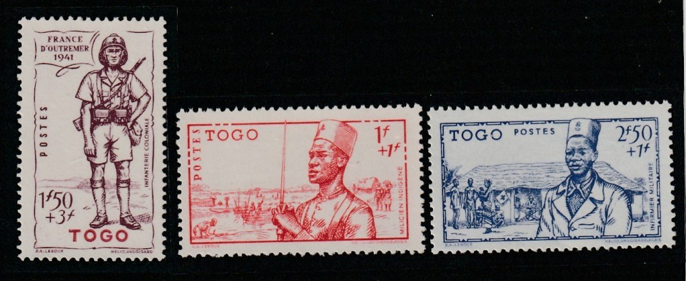 Togo , Colonii franceze 1941 - Omnibuse , Apararea tarii , serie 3 valori, dantelate , MNH , Mi.156-158