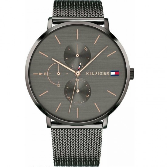 Ceas cronograf de damă din seria Jenna de la Tommy Hilfiger. Prezintă un mecanism cu baterie, care se bazează pe energia electrică produsă de baterie, rezultând precizie și durabilitate. Este rezistent la contactul minim cu apa (stropire) și orice contact mai mare cu aceasta trebuie evitat (30 de metri).