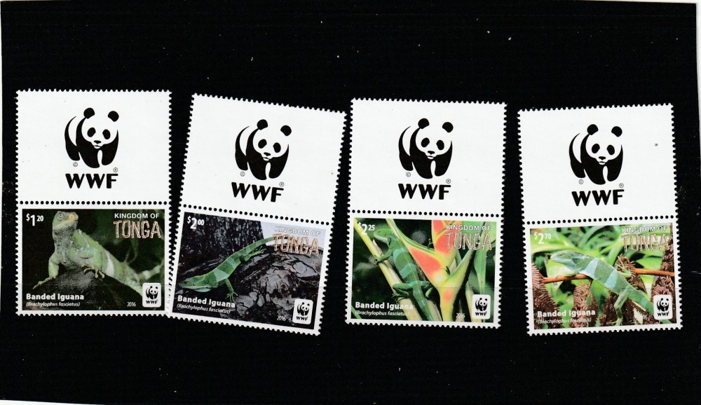 Tonga 2016 - Fauna , WWF , Iguana , serie 4 valori cu vigneta wwf , dantelate , MNH , Mi.2098-2101